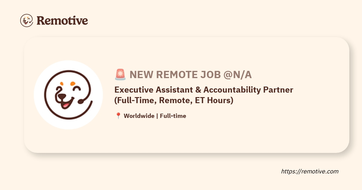 [Hiring] Executive Assistant & Accountability Partner (Full‑Time, Remote, ET Hours) @N/A